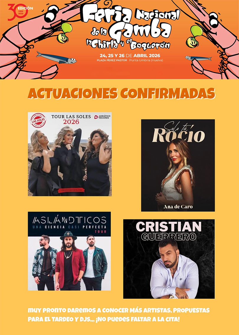 Actuaciones en la Feria. El 24, 25 y 26 de Abril en la Plaza Pérez Pastor de Punta Umbría.